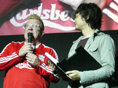 会場に来ていた人の多くは,FIFA Online 2を初めて見る人が多かったようだが,実名選手が登場するということもあり,まるで普通のサッカー観戦のような雰囲気となった。点が入れば拍手が巻き起こり,決定的なチャンスでシュートが外れれば溜息がもれるといった具合だ。最終的には,2対0で館氏のマンチェスター?ユナイテッドが勝ったということもあり,クロス
